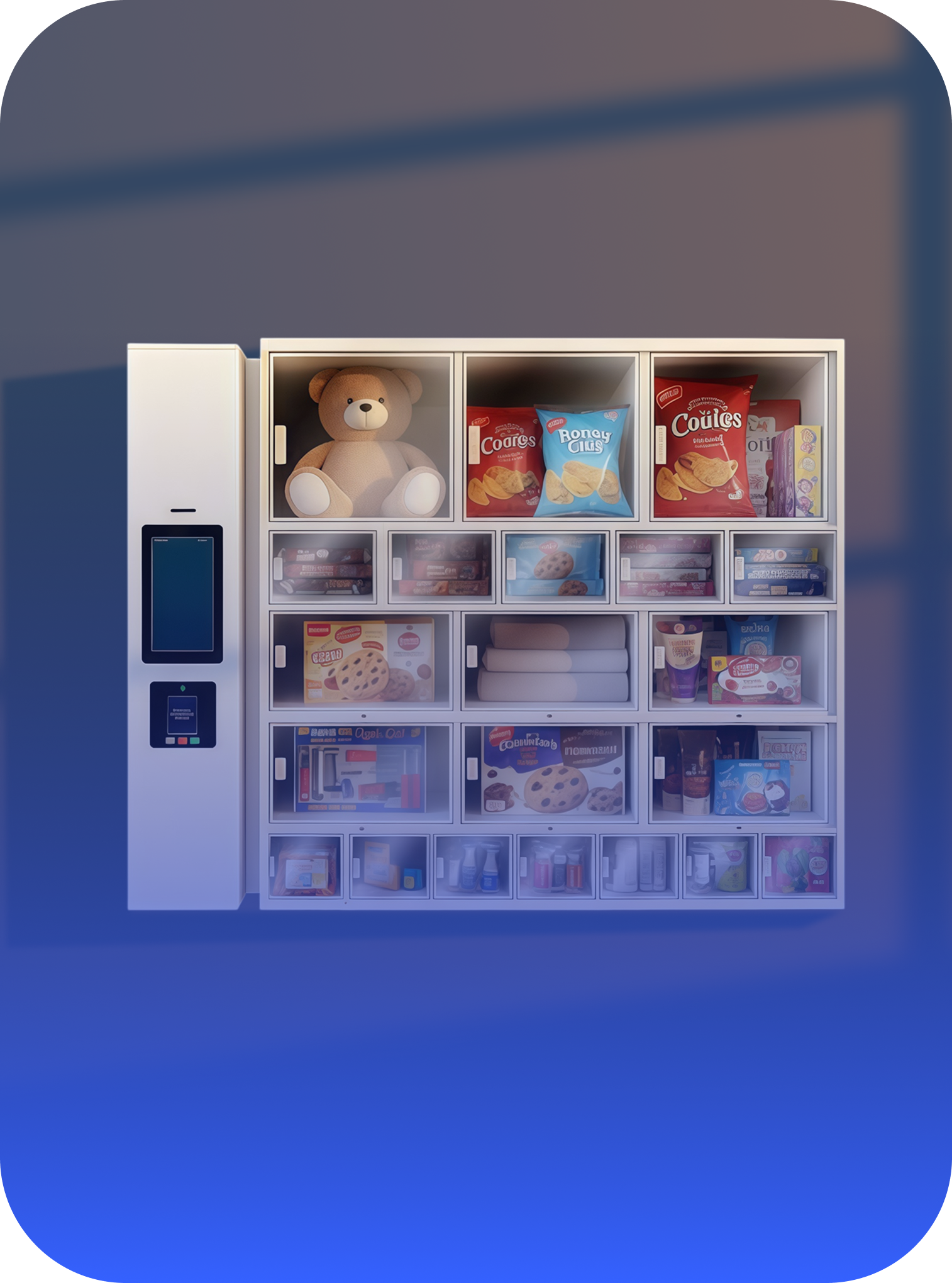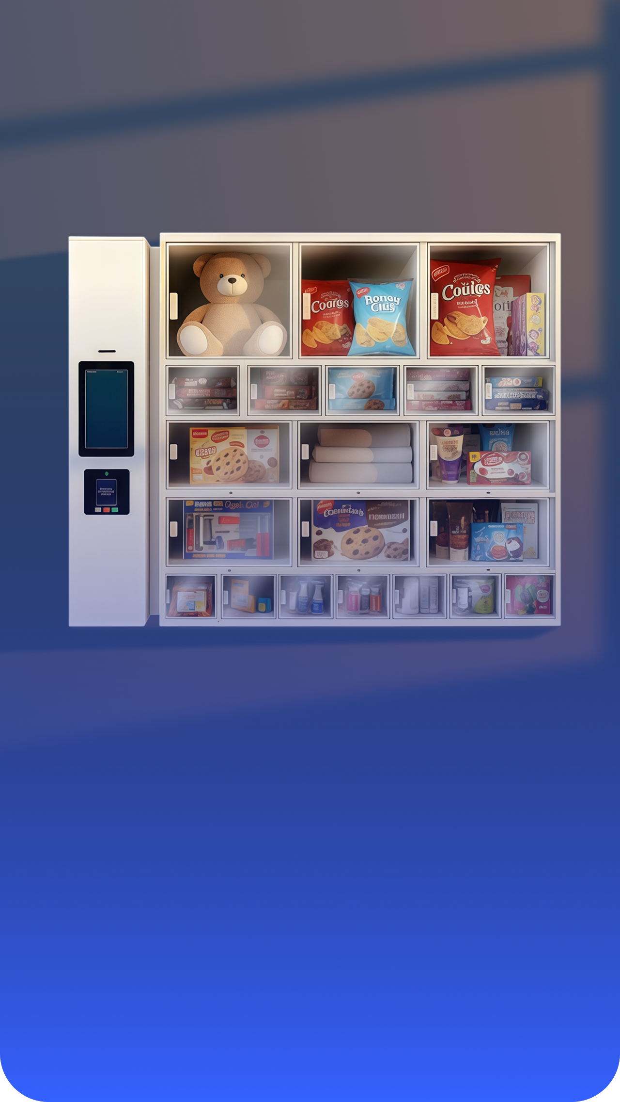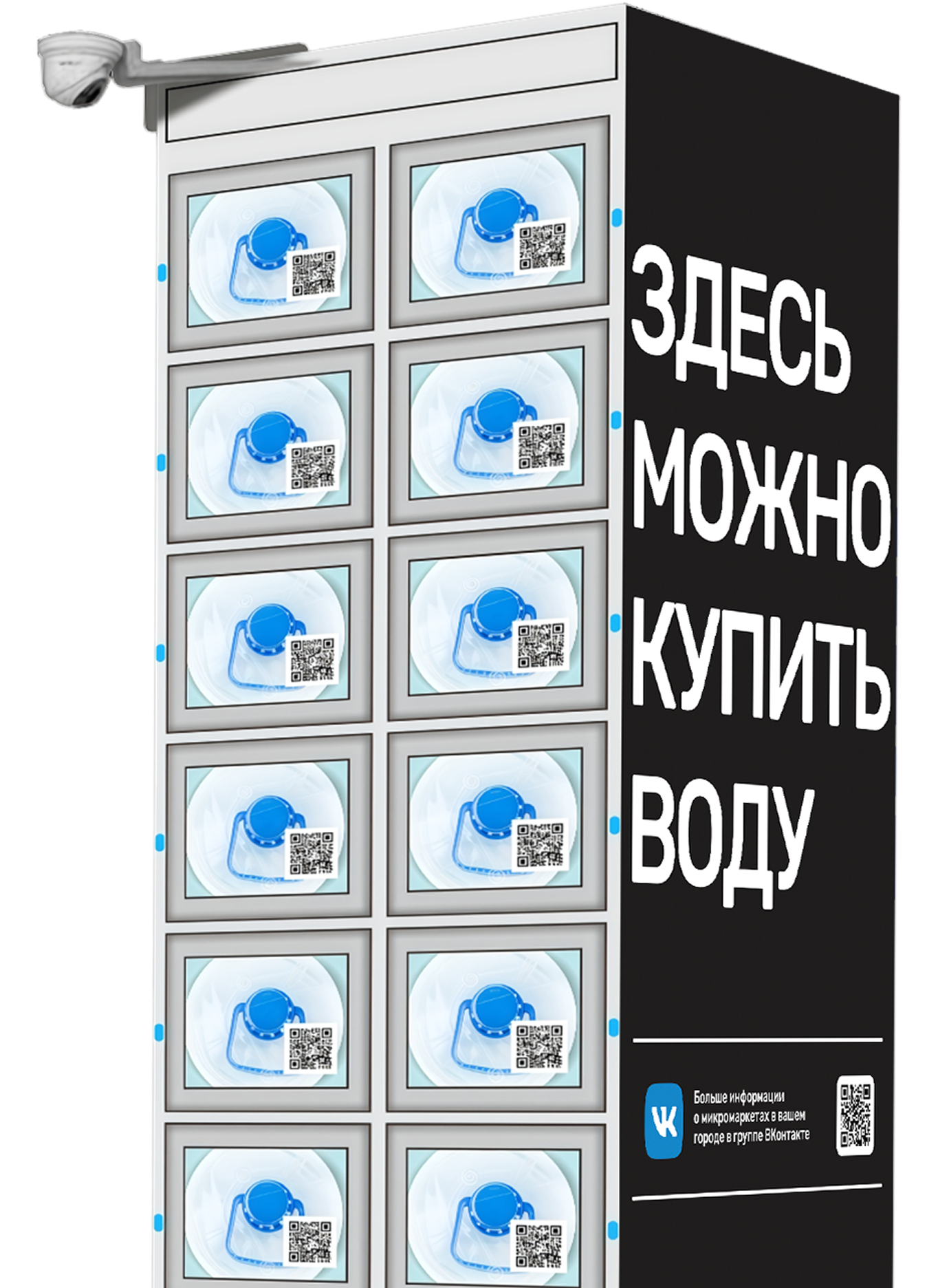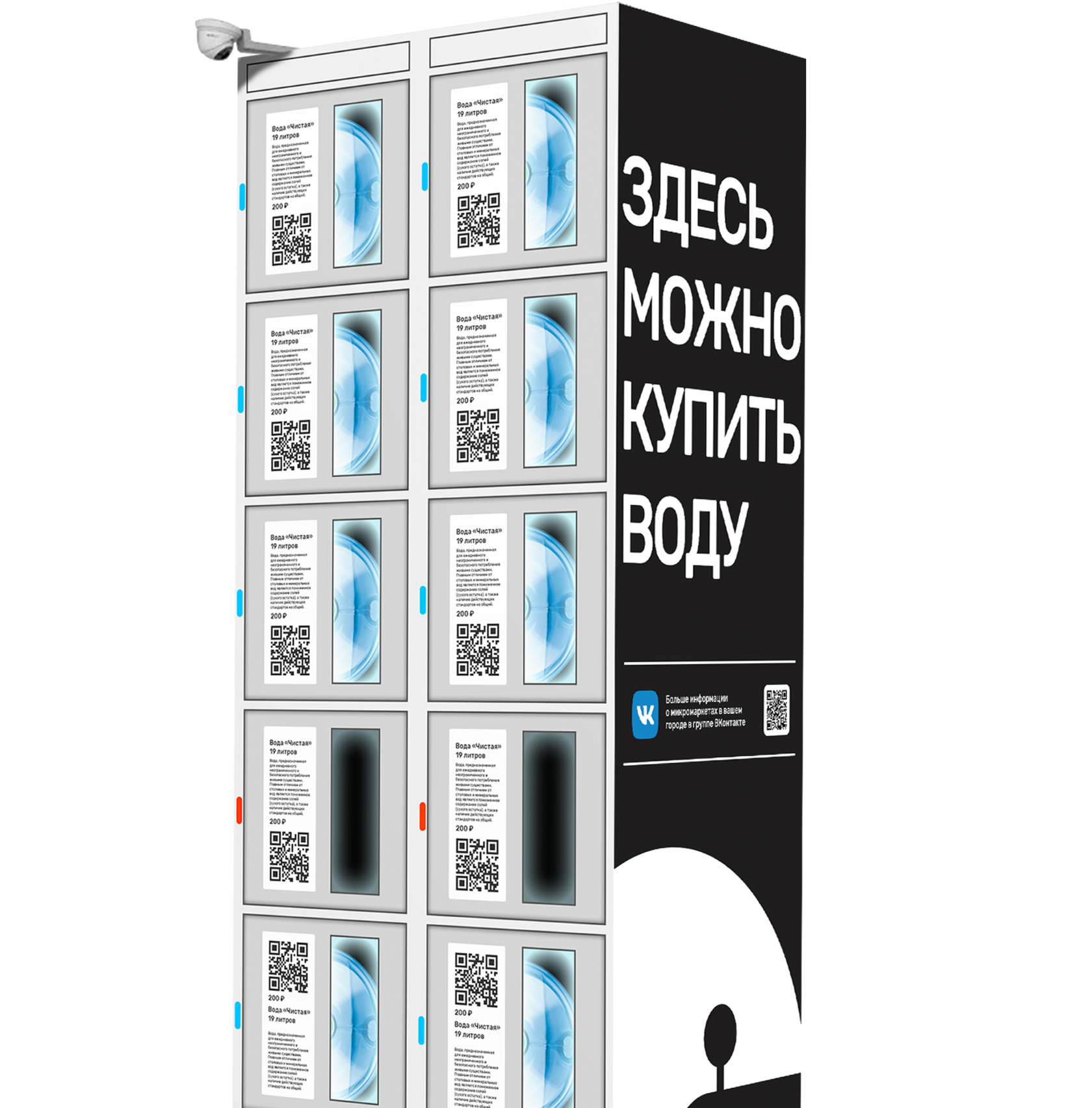 Универсальный микромаркет с яркой подсветкой, подходит для продажи товаров среднего размера: вода 5 литров, напитки, бытовые товары, бакалея.